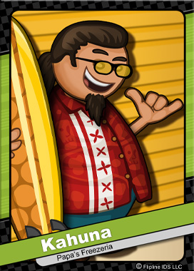 Kahuna es un cliente masculino que apareció por primera vez en Papa's Freezeria como cerrador.