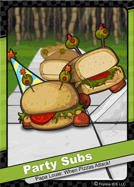 Los Party Subs son enemigos de Papa Louie: When Pizzas Attack! y Papa Louie 2: When Burgers Attack!. Ellos son unos sándwiches que se juntan formando un gran sándwich.