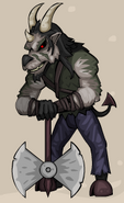 Un Petrahorn es una forma de Axegrinder que ha sido encantado con piedra como elemento. Estas cabras como gárgolas pueden permanecer inactivas durante muchos años. A menudo son confundidas como una estatua antigua, un Petrahorn simplemente esperará hasta que la curiosidad de un intruso los ponga al alcance de su afilada hacha de batalla. Otras variedades de Axegrinder incluyen Billyburn, Capricorn, Glacier Goat, Muttondraft, Ramwatt, Buckthorn, y Guillotee. Todos estos Axegrinders están bajo el control completo del gran mago, Dudley.