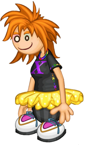 - En Papa's Bakeria, ella es desbloqueable con el Mousse de Chocolate y el Relleno de Tutti Frutti