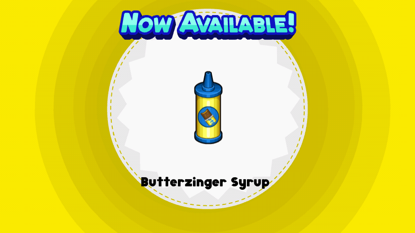 W Papa's Pancakeria HD, Syrop Butterzinger to świąteczny syrop dostępny podczas Festiwalu Filmowego Sugarplex. Jest odblokowany z Allanem na randze 17.