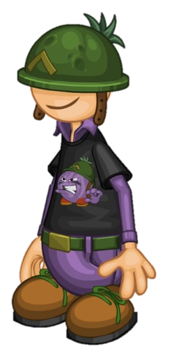 Sarge Fan podczas Halloween w Papa's Pizzeria HD ubiera się jak Sarge. Nosi fioletowy kombinezon Sarge'a z zielonym hełmem i dwiema dziurami na oczy, czarne spodnie i czarne buty z brązowymi sznurówkami.