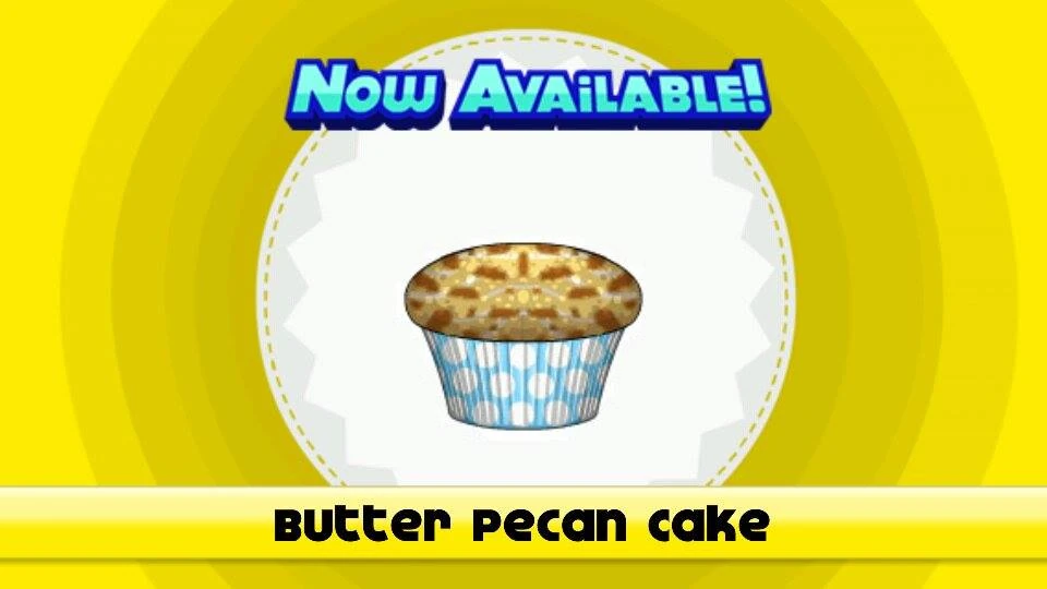 Butter Pecan Cake is a holiday-exclusive cake available during Thanksgiving in Papa's Cupcakeria To Go!/HD. It is unlocked with Hank when the player reaches Rank 51.