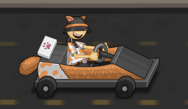This week’s exhibit is a custom kart created for CJ Friskins named The FurBaller. The kart is a plush wedge design lined with the finest faux fur. On the back of The FurBaller flaps a large tail that is stuffed to the brim with catnip. Unfortunately, the tail creates a considerable amount of drag that slows down the kart, but it also helps CJ guide the surrounding strays back to his kitty sanctuary. [1]