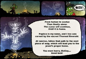 The ancient Curse of Thorns has taken hold of its latest victim, a man now known across the Wild West as Cactus McCoy. It all started when McCoy was hired by Hex Hatfield to find the Thorned Emerald. Unaware of the jewel's curse, McCoy was transformed into a walking, talking, brawling cactus. Now it is a race against time to bring the Thorned Emerald back to its proper home before Cactus McCoy is turned to a lifeless stone cactus.