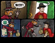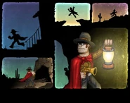 - Cactus McCoy is seen holding Hex Hatfield's gun on the title screen, the opening cutscene, and much of the game's promotional material. However, McCoy does not obtain the gun in actual gameplay until the player achieves 100% completion.