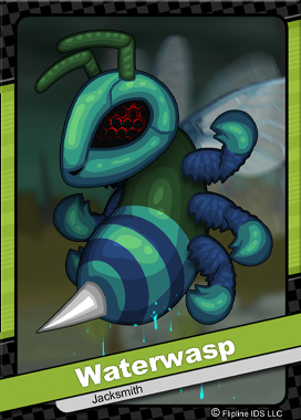 Waterwasps are a form of Hiveguard that have been enchanted with elemental water. Not only are Waterwasps a great threat in the air, they also can rocket through the water depths like a sharpened submarine. Other Hiveguard varieties include Firejacket, Freezerbee, Buzzstone, Swirlfly, Zapwing, Thornet, Stingshade. All of these dangerous Hiveguards are under the complete control of the great wizard, Dudley.