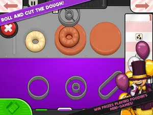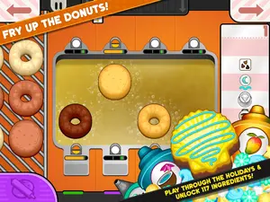 You just got a new job at Papa's Donuteria in the whimsical town of Powder Point! The pay and benefits are nice, but you took the job for that coveted Line-Jump Pass for the amusement park right outside the shop. It's not all fun and games though: Now you also have to cook delicious donuts every day for all of the crazy customers in this carnival-like town.