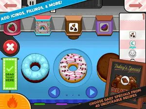 SERVE SPECIAL RECIPES - Earn Special Recipes from your customers, and serve them as the Daily Special in the Donuteria! Each Special has a bonus you can earn for serving a prime example of that recipe. Master each special to earn a special prize!