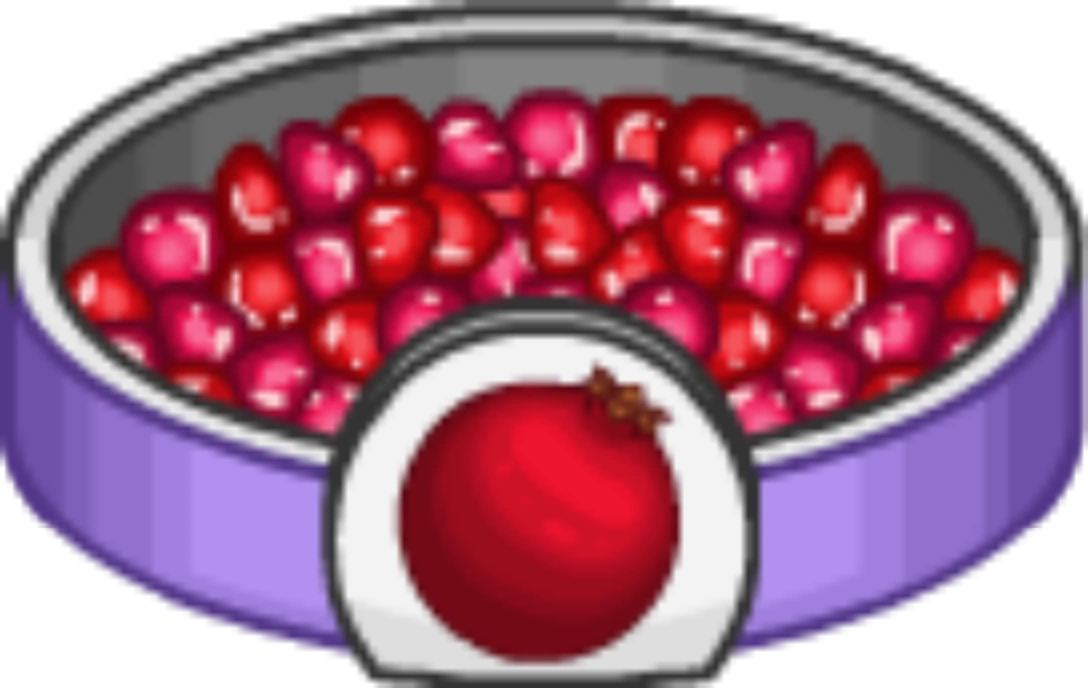 Pomegranate is a standard dough mixable in Papa's Scooperia/HD/To Go!. It is unlocked the day after the player reaches Rank 8.