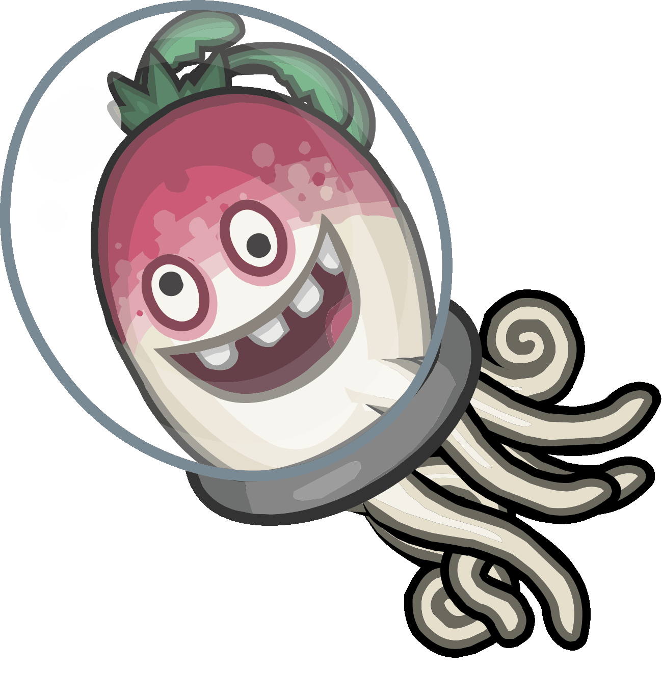 Scuba Radishes can be found within the farthest depths of Lake Chocodunk. Radley Madish created special diving helmets for these radishes so he could bring some added security to his underwater lair. Unfortunately, Scuba Radishes don’t make the best swimmers and have a very difficult time controlling their direction. Regardless of their swimming chops, they still manage to follow Radley’s simple plan of causing aquatic chaos.