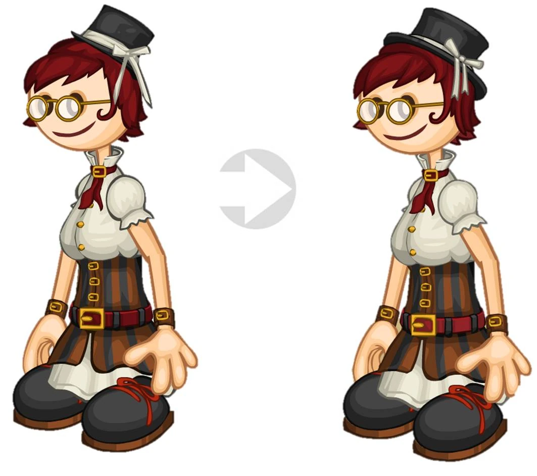 Skyler's tan was slightly updated and her hair received additional detailing. Her outfit was remodeled; most notably, the ribbon on her hat was made thinner and straighter.