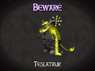 Teslataurs are a form of Stronghorn that have been enchanted with elemental lightning. These hulking beasts slowly gather static electricity as they lumber through the dry night air. The Teslataur keeps this charge to zap away the flies that swarm around most Stronghorns, but when threatened, the Teslataur can channel this electricity into its large, menacing mace. Other Stronghorn varieties include Oxfire, Mermace, Cryosteer, Boulderbull, Bisonwing, Greenhide, and Shadowhorn. All of these Stronghorns are under the complete control of the great wizard, Dudley.