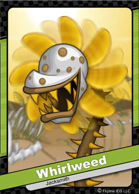 Whirlweeds are a form of Trailsnapper that have been enchanted with elemental wind. When potential prey comes close enough, the Whirlweed quickly spin its yellow petals creating a precise jetstream of air. It then releases a fragrant cloud of poisoned pollen that disorientates its prey. Other Trailsnapper varieties include Tindertulip, Marshtrap, Tundravine, Rockjaw, Electrifern, Snapdragon, and Pitchroot. All of these Trailsnappers are under the complete control of the great wizard, Dudley.