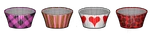 纸杯 A - 紫/黑色方格纸杯 纸杯 B - 粉/棕色垂直条纹纸杯 纸杯 C - 白/红色心形纸杯 纸杯 D - 红色豹纹纸杯 |