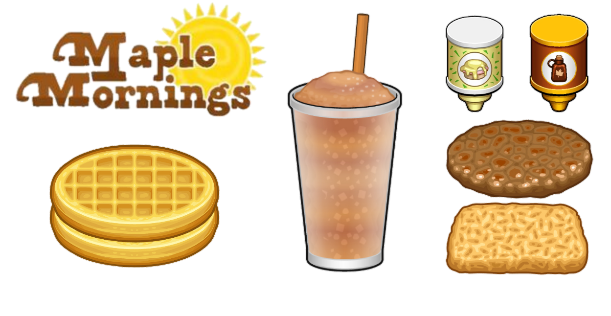 华夫饼 马铃薯饼 枫叶糖浆 肉桂漩涡冰沙 香肠肉饼 荷兰酱 |