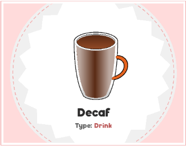 Decaf,即Decaffeinated Coffee,中译无咖啡因咖啡,在老爹餐厅管理系列中是为一种饮品及烘焙程度。