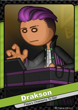 Drakson是一位男性顾客,他首次出现在老爹起司店To Go!。