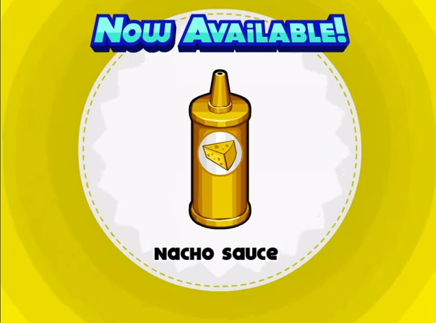 在老爹三明治店/To Go!中,玉米片酱(Nacho Sauce)是一般炸物酱料之一,与Robby(原版)/Cherissa(To Go!)在等级55解锁,玩家送出含30个含玉米片酱的订单後,可获得「Cheese Whiz」成就(原版)。