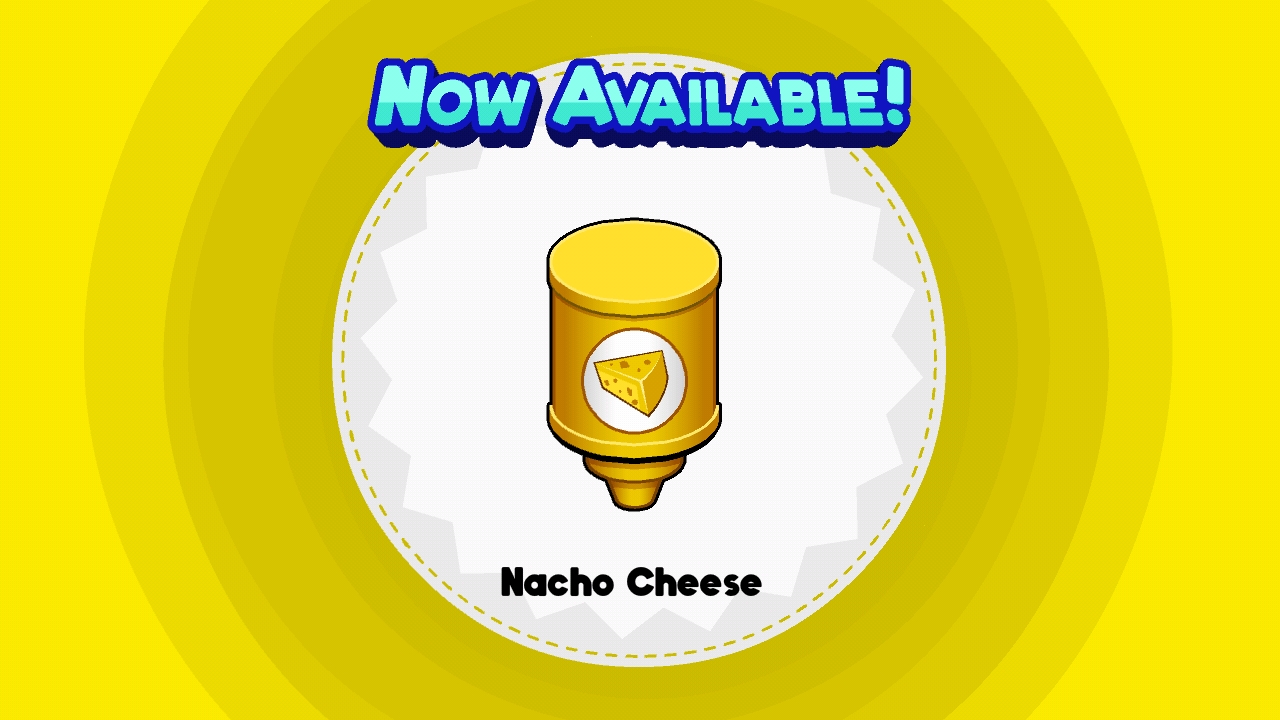 在老爹卷饼店HD/To Go!中,玉米片奶酪酱是一种标准的酱料,当玩家达到等级5时,除了解锁Rita之外,玉米片奶酪酱亦会被解锁。