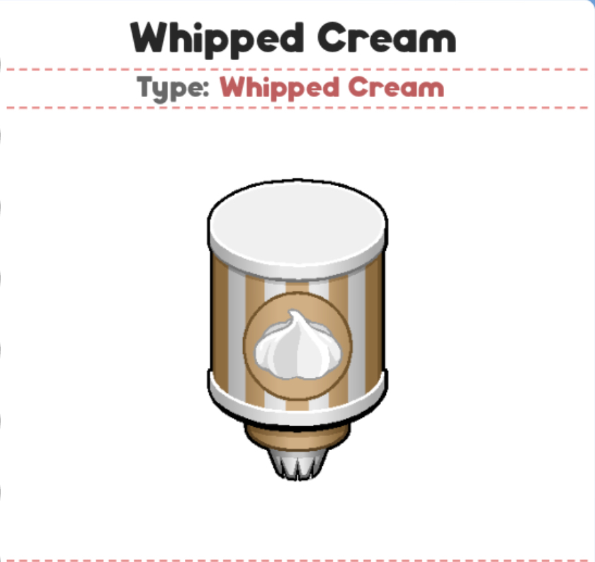 Whipped Cream 中译为鲜奶油,是许多老爹餐厅管理系列中的一种食材。